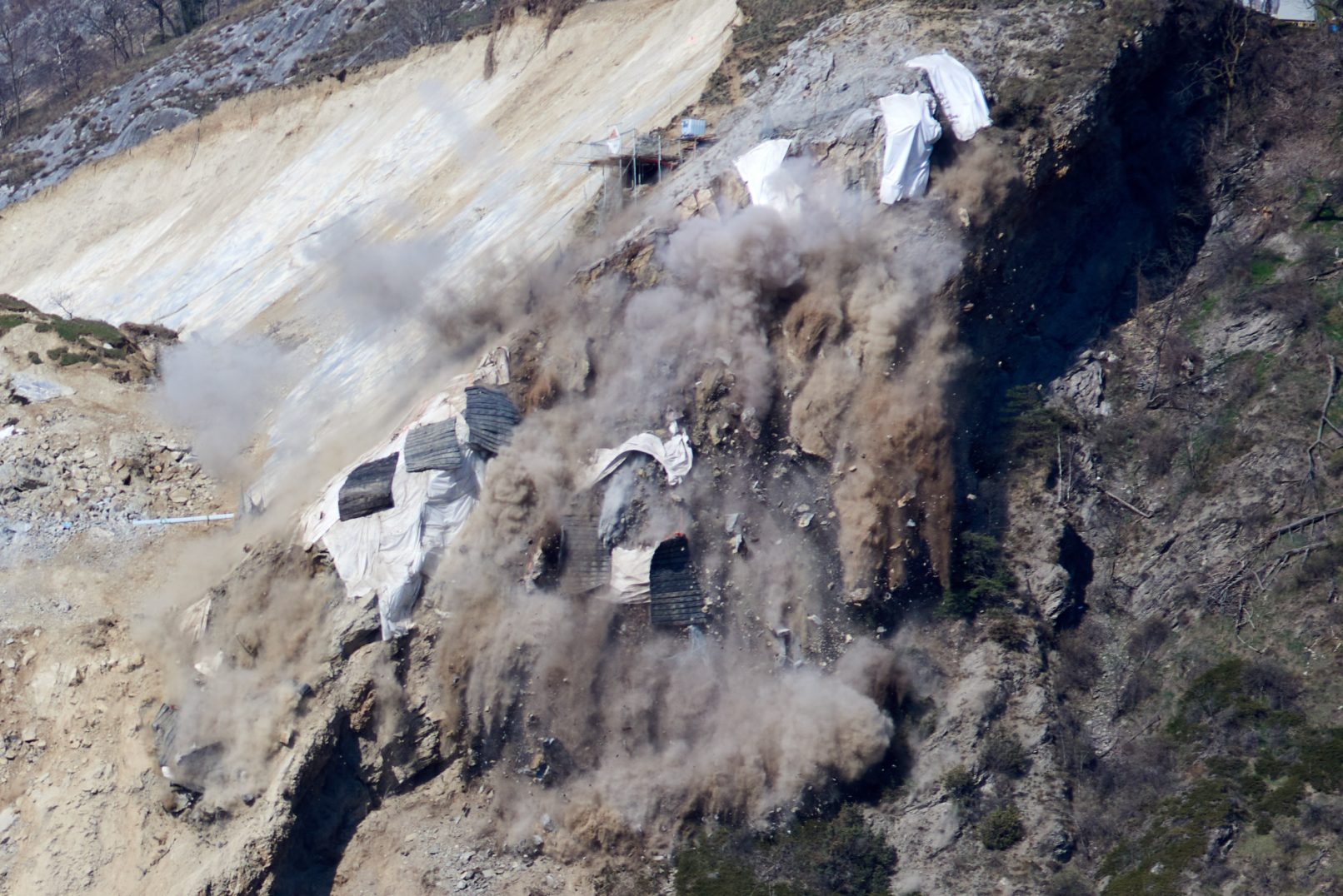 Am 10.03.2021 kam es zu einer grossen Sprengung um die Lage zu entschärfen. Seit dem Felssturz im Januar war ein Wohngebiet in Gefahr, es mussten 500 Einwohner*innen evakuiert werden.